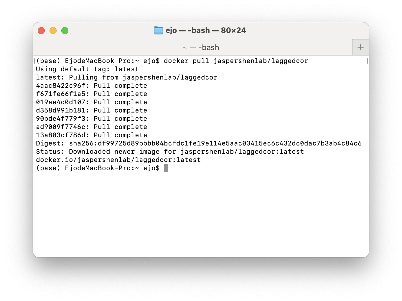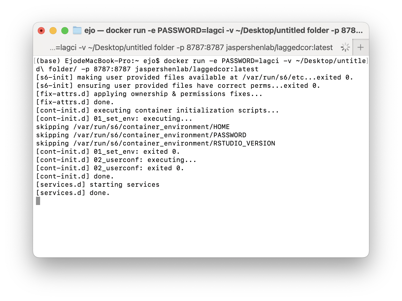 docker run -e PASSWORD=lagci -v ~/Desktop:/home/rstudio/ -p 8787:8787 jaspershen/lagci:latest