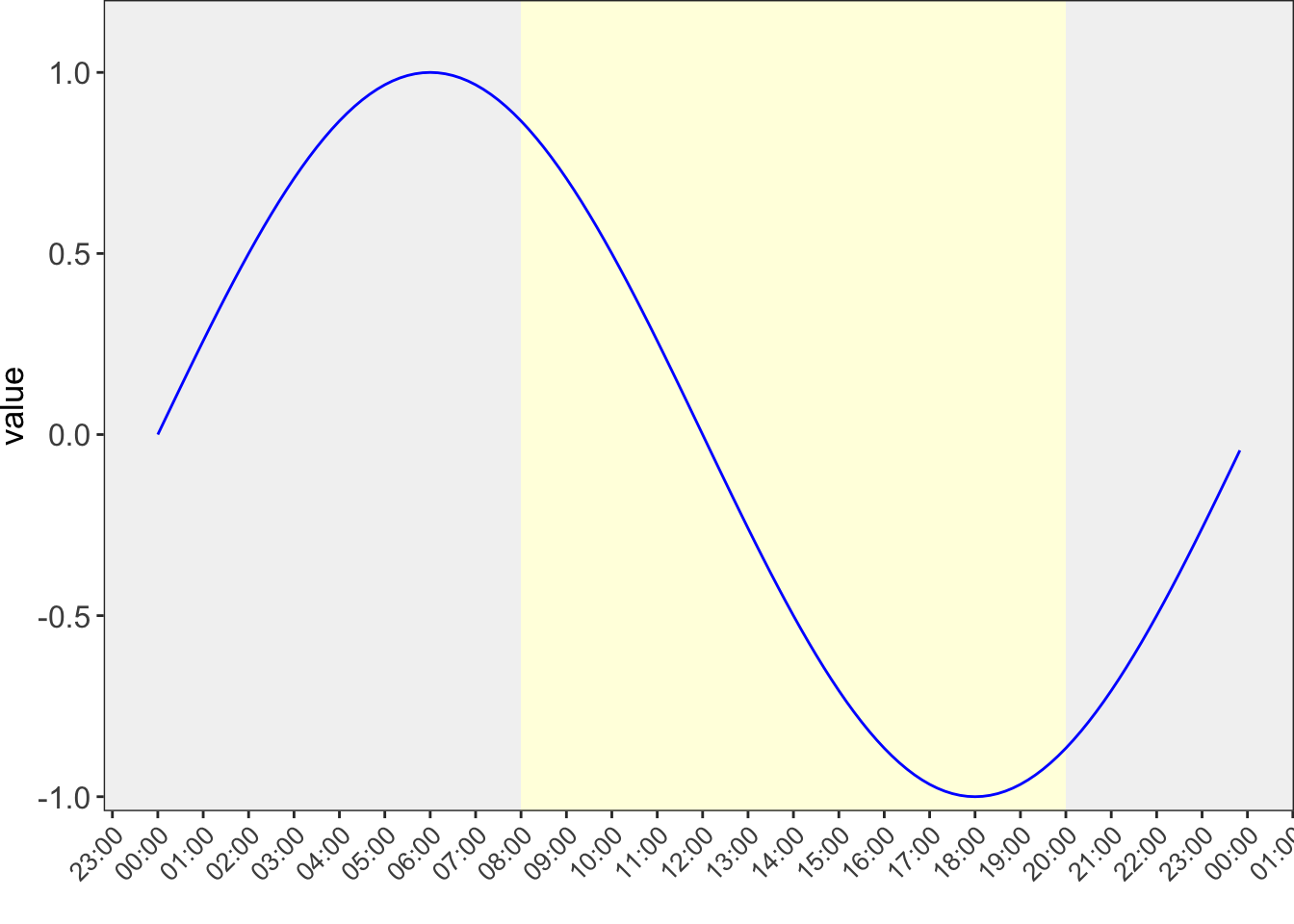 example_data_1<-data.frame( datetime =seq(from =as.POSIXct("2003-01-09 00:00:00"), to =as.POSIXct("2003-01-10 00:00:00"), by ="10 min"))example_data_1$value<-sin(seq(from =0, to =2*pi, length.out =nrow(example_data_1)))head(example_data_1)