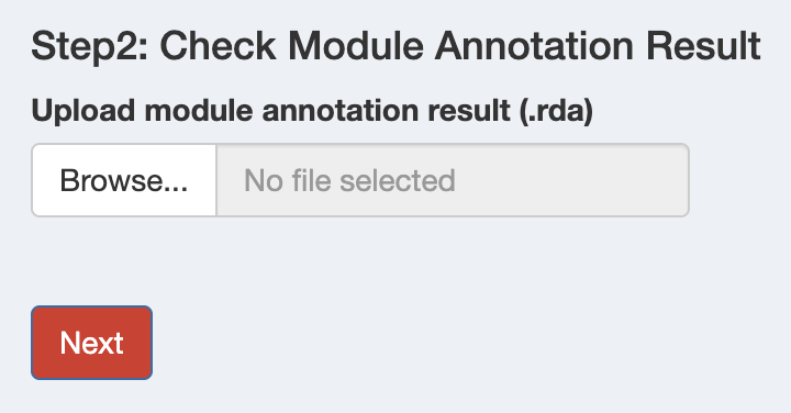 - Click “Browse” at the top of the left panel “Upload functional module (.rda)” to upload your analyzed functional module file (.rda format)